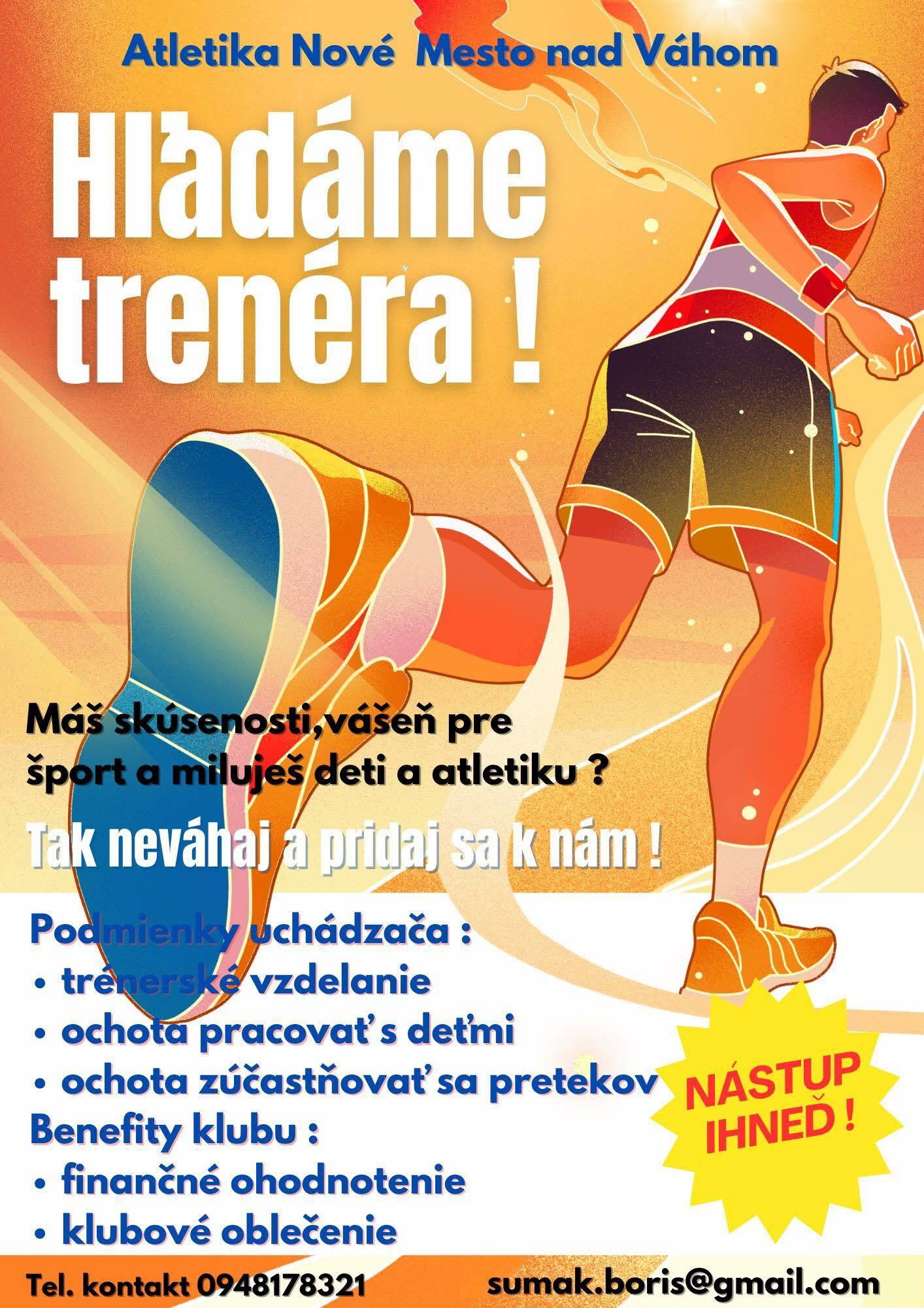 Do nášho klubu hľadáme posilu v podobe skúseného trénera / trénerky. Tvoja náplň práce bude viesť atletickú skupinu od ročníkov 2014 a starší.